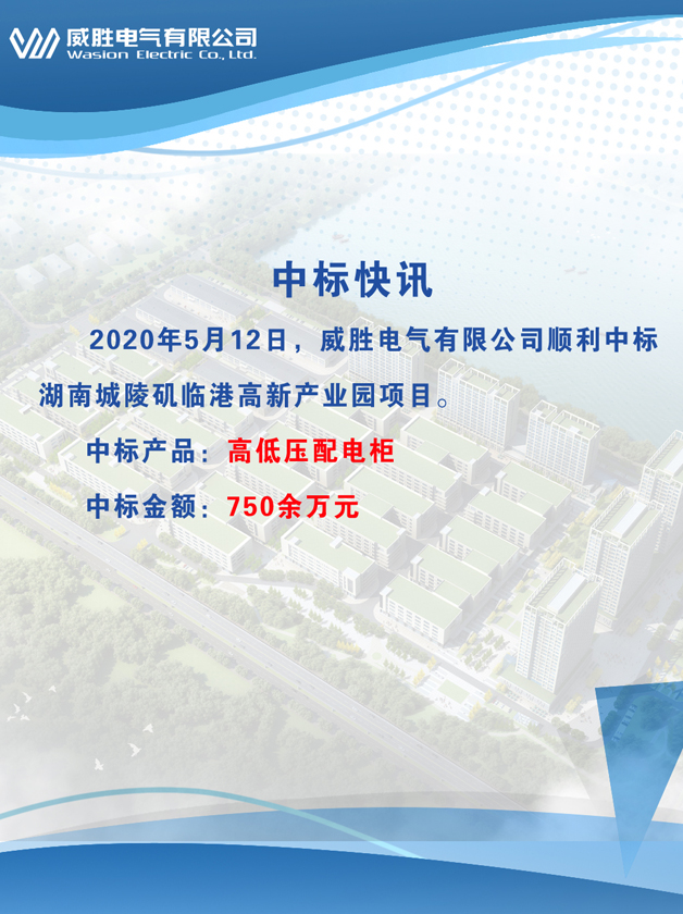 2020年5月12日,威勝電氣有限公司順利中標(biāo)湖南城陵磯臨港高新產(chǎn)業(yè)園項(xiàng)目。