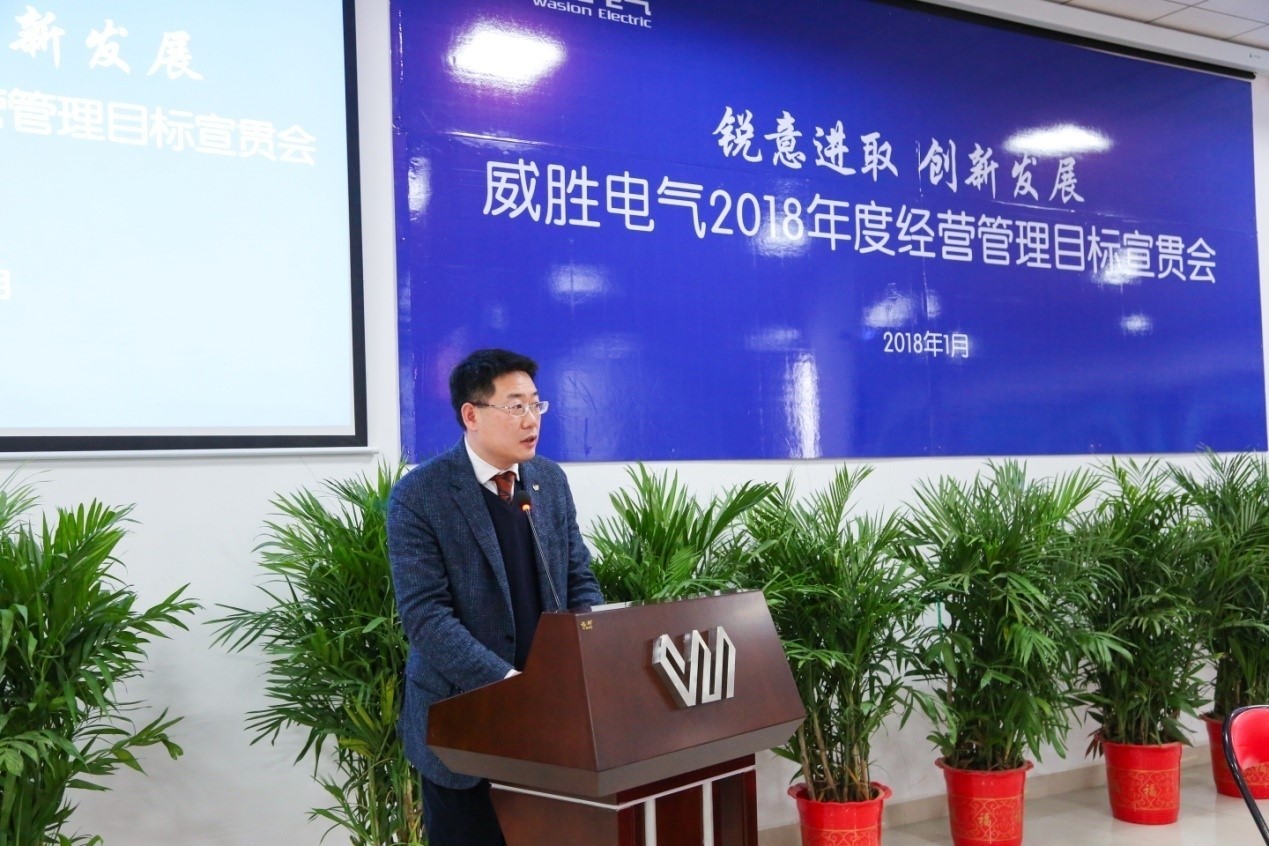 2018年經(jīng)營管理目標宣貫會共三個階段:首先,會議宣讀了2018年威勝電氣總裁任命、電氣經(jīng)營管理團隊和銷售負責人的人事任命。