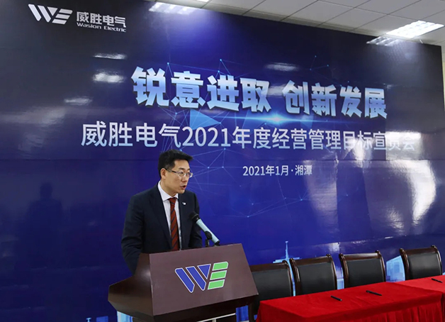 百年交匯描繪新藍圖,謀篇布局開啟新征程。1月8日上午,以“銳意進取、創新發展”為主題的威勝電氣 2021 年度經營管理目標宣貫會在電氣產業園順利召開,控股董事會吉主席及控股本部、威勝集團、威勝國際領導,威勝電氣經營管理團隊成員、干部代表共計80余人參會,會議由威勝電氣行政人力總監鄧超艷女士主持。