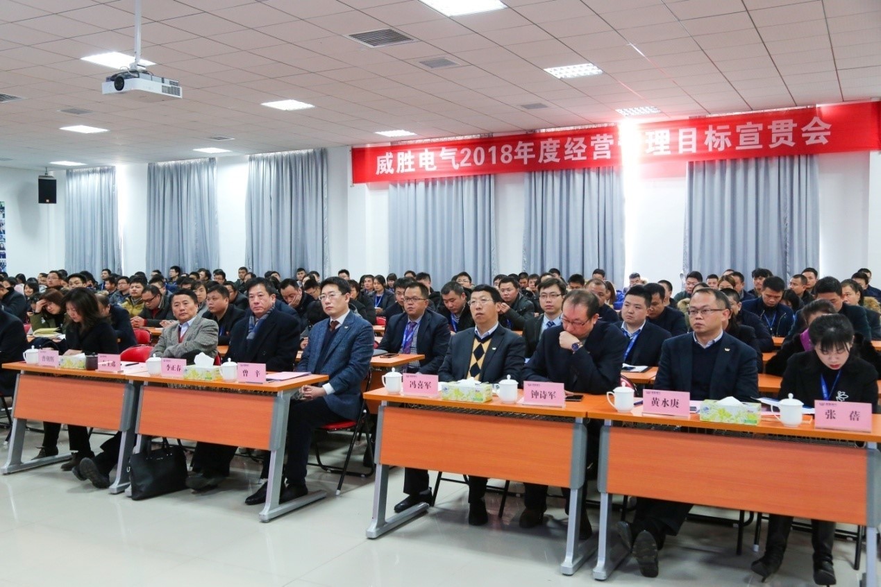 2018年經(jīng)營管理目標宣貫會共三個階段:首先,會議宣讀了2018年威勝電氣總裁任命、電氣經(jīng)營管理團隊和銷售負責人的人事任命。