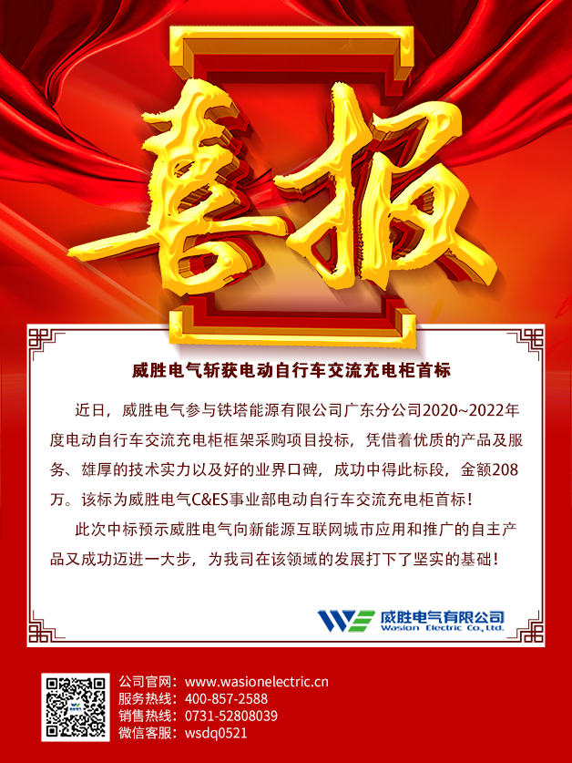【中標喜訊-威勝電氣斬獲電動自行車交流充電柜首標!】