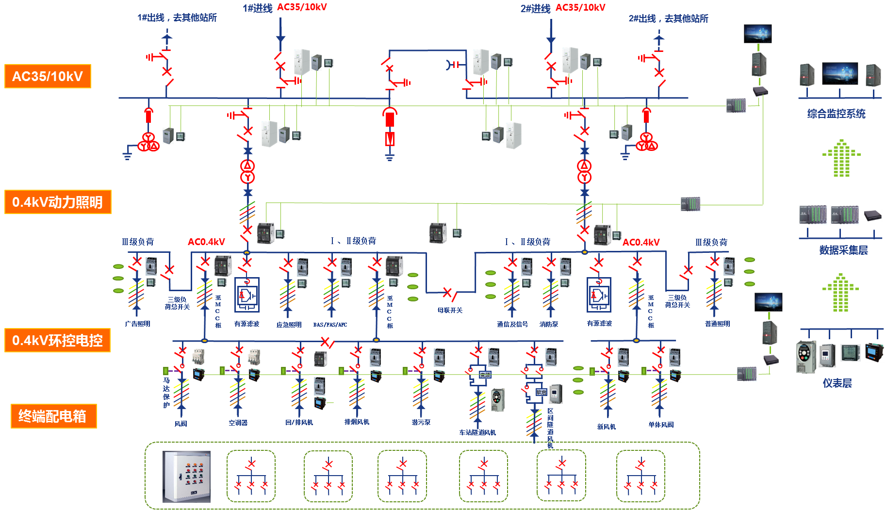 威勝電氣為高速鐵路高壓電源線路、(35)10KV變電所、10KV電力貫通線路戰場及區間高低壓電力線路、10/0.4KV變電所、電力遠動、站房動力照明、智能能效管理等提供周到的服務。